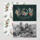 This classic and elegant "JOY" Christmas holiday photo card features pine cones, pine leaves, red berries, greenery and winter birds, such as a cardinal, robin, and bullfinch on a dark green background. The reverse side features a white background with holiday greenery. Personalise it for your needs. You can find matching products at my store.