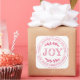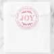Christmas gift label sticker with your personal message and names in hot pink stylish typography features the text JOY in handwritten typography with a stylish touch of rustic foliage. Simply add your personalised holiday wishes text. Exclusively designed for you by Happy Dolphin Studio. If you need any help or matching products please contact us via our store chat. Happy holidays and Merry Christmas!