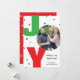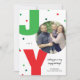 Capture the brightness of the season, with the festive JOY Red and Green Photo Christmas Card. This modern photo card features the word JOY in bold green and red letters. The letter O is a circular spot to feature your favourite family photo from the year. The colourful letters and playful red and green dots pop on the crisp white background. The charm continues on the back of the card with playful white polka dots scattered throughout a the solid red background. Send a card to your loved ones near and far for a merry statement this holiday season.