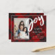 Joy Red Black Plaid Tartan Photo Happy Holiday Postcard