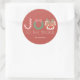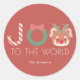This cute and funny christmas holiday round sticker features a word " joy " with a candy cane, a greenery wreath with a ribbon, and a red panda with red nose and reindeer headpiece on red background. Personalise it for your needs. You can find matching products at my store.
