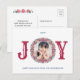 Joy Retro Floral Holiday Wreath One Photo Colourfu Announcement Postcard