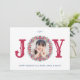 Send stylish joyful greetings and share one favourite photo with festive colourful holiday greeting cards. All text on this template is simple to customise with any wording. (IMAGE PLACEMENT TIP: An easy way to position a photo exactly how you want is to crop it before uploading to the Zazzle website.) The card front features a retro red, white, blue and green floral wreath and vintage typography "JOY" framing one photo of your choice. Back of card features a festive garland pattern of flowers and modern blue handwritten style typography. Family and friends will love displaying this unique and elegant personalised Christmas card. Happy Holidays!