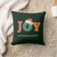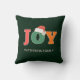 Customer specific, colourful, festive, typographic "JOY" santa hat, green, holiday throw pillow. Customise with your name / text or family signature.