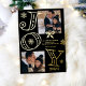 Spread joy and blessings this holiday season with this stylish and festive two-photo "Joy" Christmas card. Featuring elegant letters in real gold foil on black this card offers a personalised touch to your holiday greetings. The modern design incorporates snowflake accents and space for two of your favourite family photos, making it the perfect way to share love and happiness with friends and family