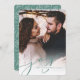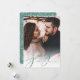 Our simple and elegant holiday photo card features your favourite full bleed vertical or portrait orientated photo, fading to white at the bottom. "Joy" appears as a light spruce green script text overlay along with your names or family name, and the year. Cards reverse to a winter leaves pattern.