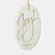 This beautiful ornament is both simple and elegant. It features a minimalist design with a white background and the word "Joy" written in modern faux glitter gold script typography. There is space to write a name and year, and a photo on the back. Perfect for a gift or annual family memento.