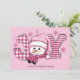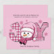 Cute pink snowman and snowflakes "JOY" Christmas/holiday greeting card. Personalise with your family name and any other text you choose.