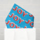 Red JOY text on turquoise background with snow flakes for Christmas