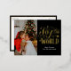 Joy to the World Black Gold Script Photo Modern Foil Holiday Postcard
