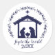 Joy to the World Blue Nativity Classic Round Stick Sticker