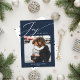 Share the “joy” of the holidays with your friends and family! These modern, simple, and stylish 7x5 inch holiday photo cards feature modern typography in white on navy blue, with a spot for your favourite photo.