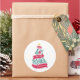 Stickers with a fun and whimsical illustration. Typography design in the shape of a Christmas tree with some christmas ornaments and a star on top. Inside are the words: Joy to the world.