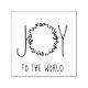 A simple address stamp featuring a silhouette of a wreath of greenery incorporated into the phrase "joy to the world".