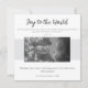 This minimalist Christmas card features an elegant and classic modern black, gray and white color scheme. The words "Joy to the World" are written across the top in festive calligraphy font along with the scripture from Luke 2:10 - ""And the angel said unto them, 'Fear not: for, behold, I bring you good tidings of great joy, which shall be to all people'" written in plain font below. This card includes one large space for a photo of you and your family from the past year as well as the ability to change the greeting above your name and year. The back of the card provides space for a personal letter or message if you want to include one, or you can leave it blank. Wishing you all the blessings of Christmas this holiday season!