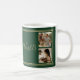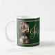 Joy to the world 4 photo collage holiday mug Deep rich holiday green background. Add your favourite family pictures to personalise. Add current year. Elegant coffee mug. So simple, yet chic.