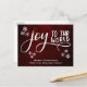 This pretty design makes a great addition to your festive Christmas season. It features a white graphic of "joy to the world" set up with two complementary fonts. Surrounding the words are three trios of white snowflakes. The word "joy" is rendered in a pretty script font with a long flourish on the end of the last letter, making room for the all-caps, bold, casual "to the world" setup. Behind these overlays is a red and black photo depicting bokeh light flares which adds to the celebratory feel. Use the template fields to add your personal message and return address.