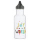 This cute Joy to the World water bottle features lots of colour and images of stars, hearts, snowflakes, holly, a Christmas tree and ornament. A cheerful water bottle for the Christmas season.