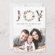 JOY Typography Poinsettia Floral Christmas Photo Holiday Card