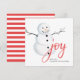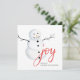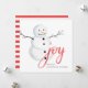 Joy. Watercolor cute Christmas snowman. Red white Holiday Card