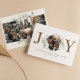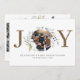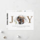 This is a joy Christmas double sided flat card featuring modern typography and watercolor greenery around a circular photo. Features 5 photos in total. Photos by prostooleh / Freepik.