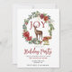 A unique and whimsical illustrated stag with Christmas holiday wreath party invitation.