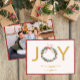 JOY Wreath Photo Christmas Card with Plaid Trim