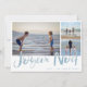 Family three photo collage "Joyeux Noel" beach design holiday card. Customised with three of your favourite photos, greeting and family name.