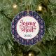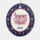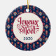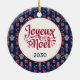 This fabulous Christmas folk art blue round ceramic ornament with a pattern of angels, nutcrackers, stars and presents that says Merry Christmas in French "Joyeux Noel" and has the year would look awesome on your Christmas tree. It's so festive and will go with any Christmas decor - it's rustic yet retro and modern yet traditional! Get some as gifts for loved ones...they'll love it!