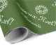 Joyeux Noël French Merry Christmas wrapping paper. Personalised gift wrap with wreath, custom name and french Holidays message. Customisable green background colours and greeting.