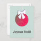 Joyeux Noel. French Merry Christmas. Cute Christmas bulb with white bow. Background colour can be customised