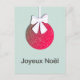 Joyeux Noel. French Merry Christmas. Cute Christmas bulb with white bow. Background colour can be customised
