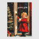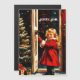 Magnetic Card with a charming vintage-inspired Christmas graphic design. A cute little girl in red coat is standing at the doorstep . She is smiling .The starry night outdoors beautifully contrasts with the festive Christmas tree in the hall. It comes with the French Christmas wish " Joyeux Noel " . Using the versatile Zazzle tools you can effortlessly customise text and fonts.