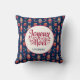 This fabulous Christmas folk art 16" x 16" blue pillow with a pattern of santas, reindeer, presents and stars that says Merry Christmas in French "Joyeux Noel" and has your last name would look awesome on your couch, bed or chairs! It's so festive and will go with any Christmas decor - it's rustic yet retro and modern yet traditional! It'll look fantastic and add that little extra Christmas touch to your home!