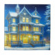 Joyeux Noël Pretty Blue Christmas House with pretty snow in the background.