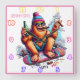 A furry creature enjoys a lively party, holding a drink and cigar, while sitting on a skateboard surrounded by confetti and smoke.