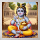 Joyful Blue Classic Bala Krishna Pot Art Design Poster