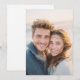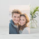 This wedding invitation features a warm, intimate photograph of two individuals sharing a joyful moment, capturing the essence of love and happiness. The design showcases a soft colour palette with earthy tones, complemented by a textured blue sweater and a light knit top, creating a harmonious contrast against a blurred natural backdrop. The candid style emphasizes genuine emotion, with tousled hair adding a sense of spontaneity and movement. Perfect for couples seeking an authentic and heartfelt touch, this invitation conveys a dreamy, serene mood ideal for celebrating a special life moment.
