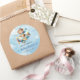 Celebrate your little aviator’s upcoming arrival with this adorable boy baby shower sticker featuring a cute teddy bear pilot flying a vintage airplane. Designed in a charming blue and brown color palette, this aviation-themed sticker adds the perfect touch of sweetness and adventure to any baby shower décor. Use it for favor bags, envelopes, gift packaging, party décor, thank-you tags, or diaper raffle prizes to instantly elevate your event’s theme.