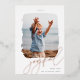 An elegant and modern photo card for your Christmas 2022 greetings, featuring a single vertical or portrait-orientated photo in a unique paintbrushed frame. "Joyful" appears beneath in rose gold foil hand lettered script, with your custom holiday greeting (shown with "Holiday Wishes") and family name beneath. Add the year across the top to create a memorable finish.