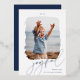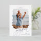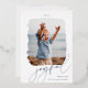 An elegant and modern photo card for your Christmas 2021 greetings, featuring a single vertical or portrait-orientated photo in a unique paintbrushed frame. "Joyful" appears beneath in silver foil hand lettered script, with your custom holiday greeting (shown with "Holiday Wishes") and family name beneath. Add the year across the top to create a memorable finish.
