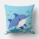 Joyful Cartoon Dolphin Swimming in Blue Water Cushion