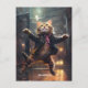 This image captures a cat in mid-motion, joyfully dancing or leaping in a rain-soaked urban street. The cat, portrayed in a human-like stance, sports a rugged jacket and a pink neck scarf. Its upward gaze and outstretched paws convey a sense of playfulness and joy. The reflections on the wet pavement and the soft glow of street lights in the background enhance the dynamic and spirited ambiance of the scene. generativecontent