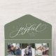 An elegant script "joyful" is surrounded by sparkly stars on this unique holiday trifold card. Personalise it with your collage of 6 photos and large single photo. There's also room for a longer message that can work as an update or left blank. Perfect for sending Christmas cheer to friends and family. This sage green card folds and can be sent without an envelope.
