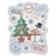 A delightful collection of Christmas stickers features a vibrant tree, a cheerful snowman, and various festive messages. Perfectly suited for holiday cards or decorations, these stickers radiate joy and invite the spirit of Christmas into your home.