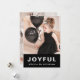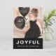 This modern and minimal Christmas photo greeting features big joyful type in an elegant silver grey on a black background. There is a full photo on the back of this trendy card.