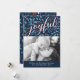Joyful and cheerful hand-painted watercolor winter foliage holiday photo card with script lettering, blue branches and red berries.
