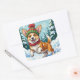 Joyful Corgi Dog Bouncing in Snow with Pom Pom Square Sticker