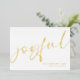 Joyful Elegant Calligraphy Name Christmas White. A touch of real foil for the typography on the front in either gold, silver or rose gold for this minimalist design. Joyful is in a stylish set Calligraphy and easily personalise with your name and greeting on the back.