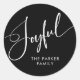 Joyful | Elegant Script Black Christmas Classic Round Sticker